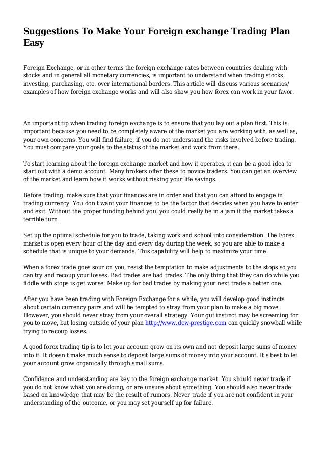 Suggestions To Make Your Foreign Exchange Trading Plan Easy